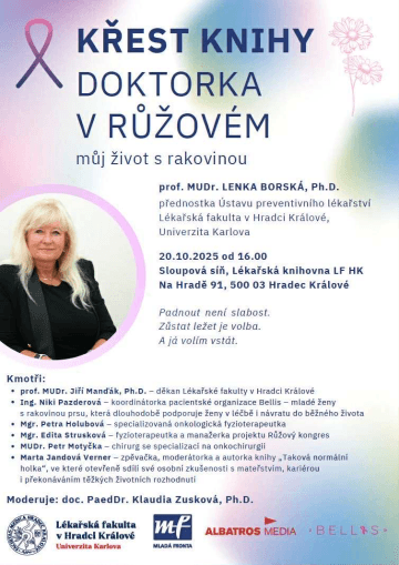 Na křtu mé autobiografické knihy (říjen 2025) budu stát nejen jako profesorka, ale i jako pacientka. Jako žena, která ví, co znamená padnout. Ale která také ví, že vstát je možné. Že v tom nikdy nejsme samy.