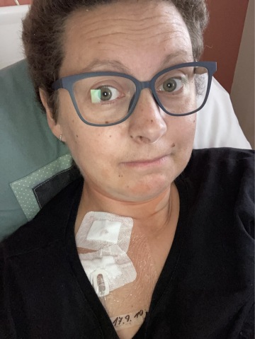Pár dní doma a hned zpátky do nemocnice. Začátek listopadu 23 - nástup na onkologii - první chemoterapie. Nevěděla jsem, co mě čeká, blbě jsem chodila, snažila se jíst, abych dostala energii a učila se nové věci. Před sebou 8-9 cyklů chemoterapie a nevědomí, co to udělá s tělem a hlavou. Naučila jsem se nějaký režim, ale vždy přišlo něco, co mě dostalo do kolen. Po prvním chemoterapii následná hospitalizace (selhání bílých krvinek), teploty, izolace. Po třech týdnech začaly padat vlasy, což mě rozsekalo asi úplně nejvíc. Nejdřív jsem se ostříhala na krátko a pak mě manžel vzal strojkem, počkala jsem až odejde na pivo a já probrečela půl večera. Najednou to nebyla jen noha, nemocnice a tak, najednou přišla ta realita té nemoci.