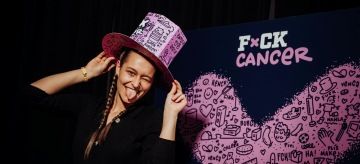 The lavender top hat is the symbol of the entire FUCK CANCER campaign!